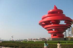 五四广场分南北两部分,分布于中轴线上的市政府办公大楼、隐式喷泉、点阵喷泉、《五月的风》雕塑、海上百米喷泉等富有节奏地展...